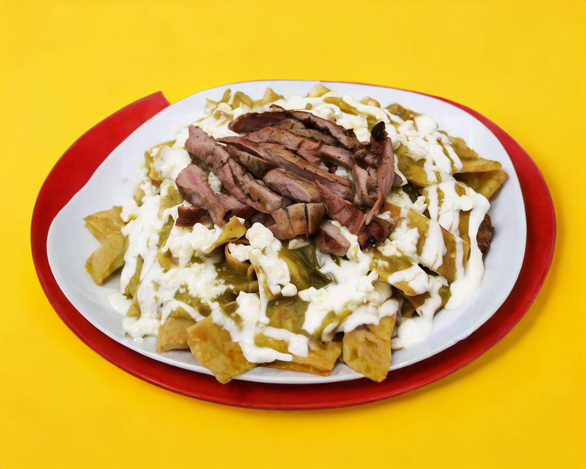 Chilaquiles Rojos con Bistec