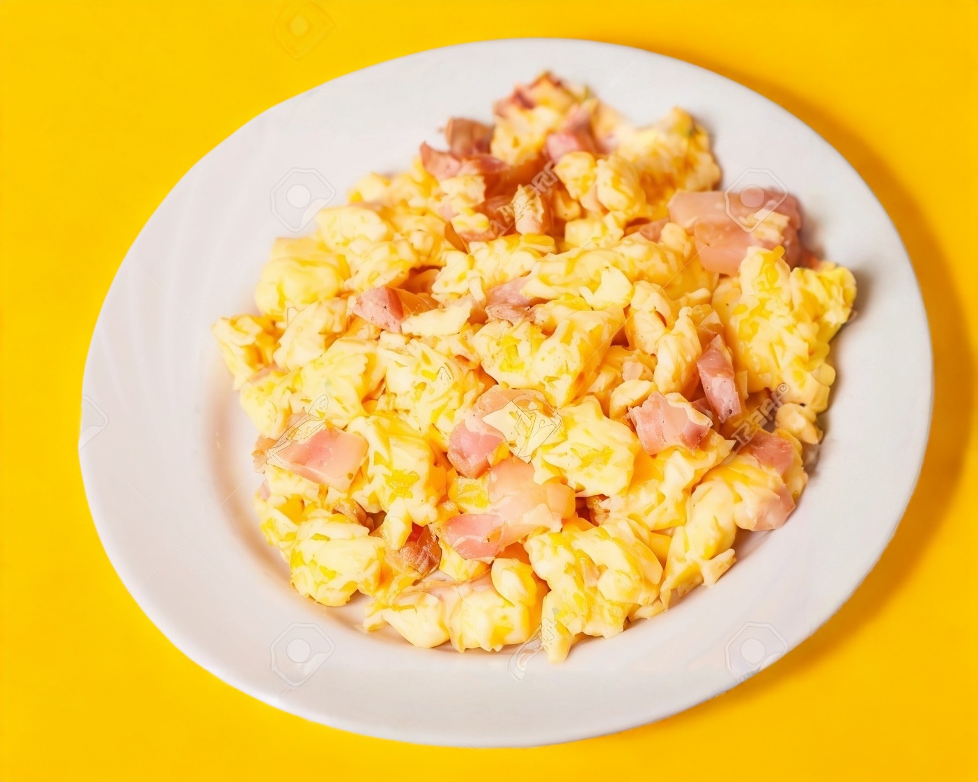 Huevos revueltos con jamón, un clásico desayuno.