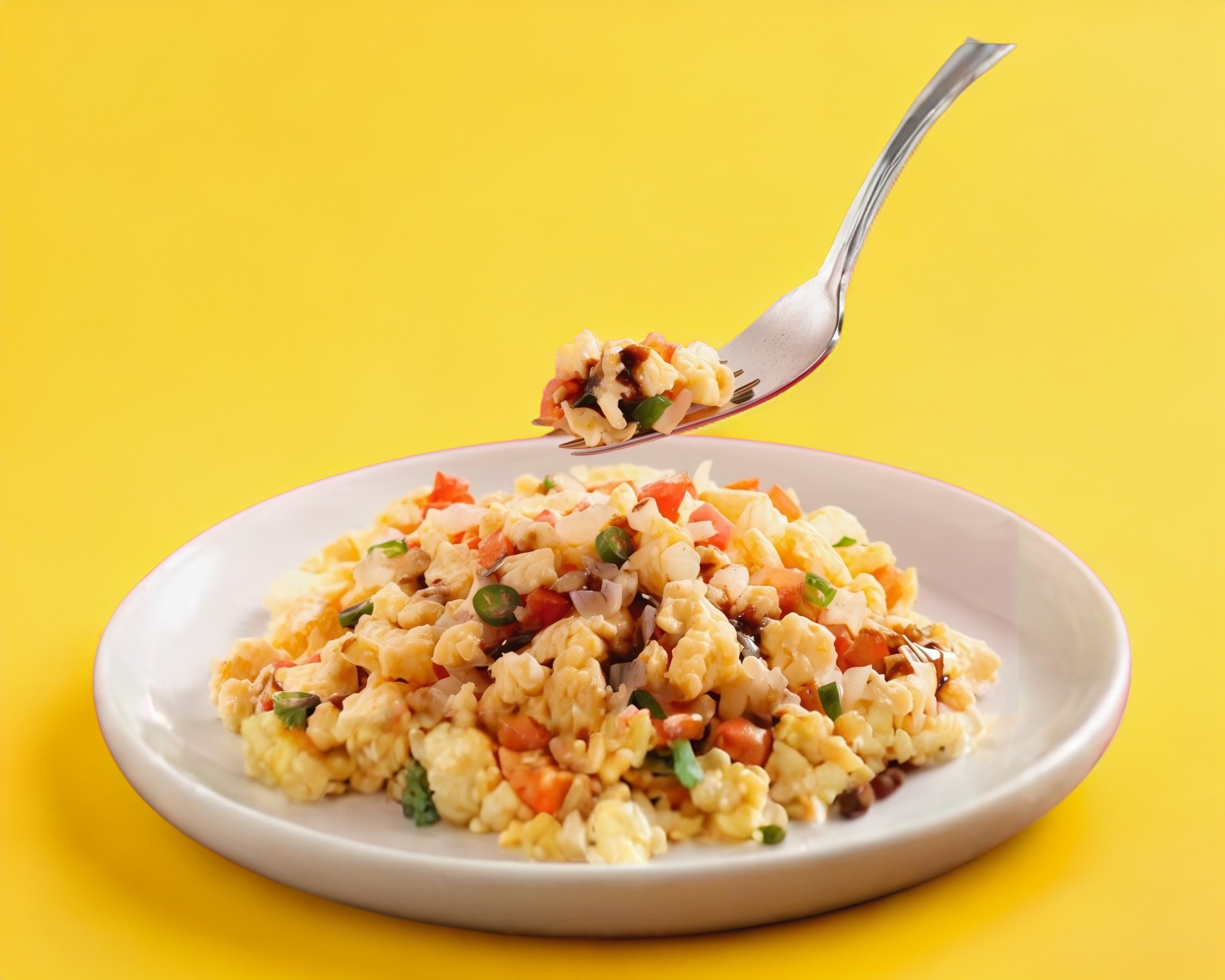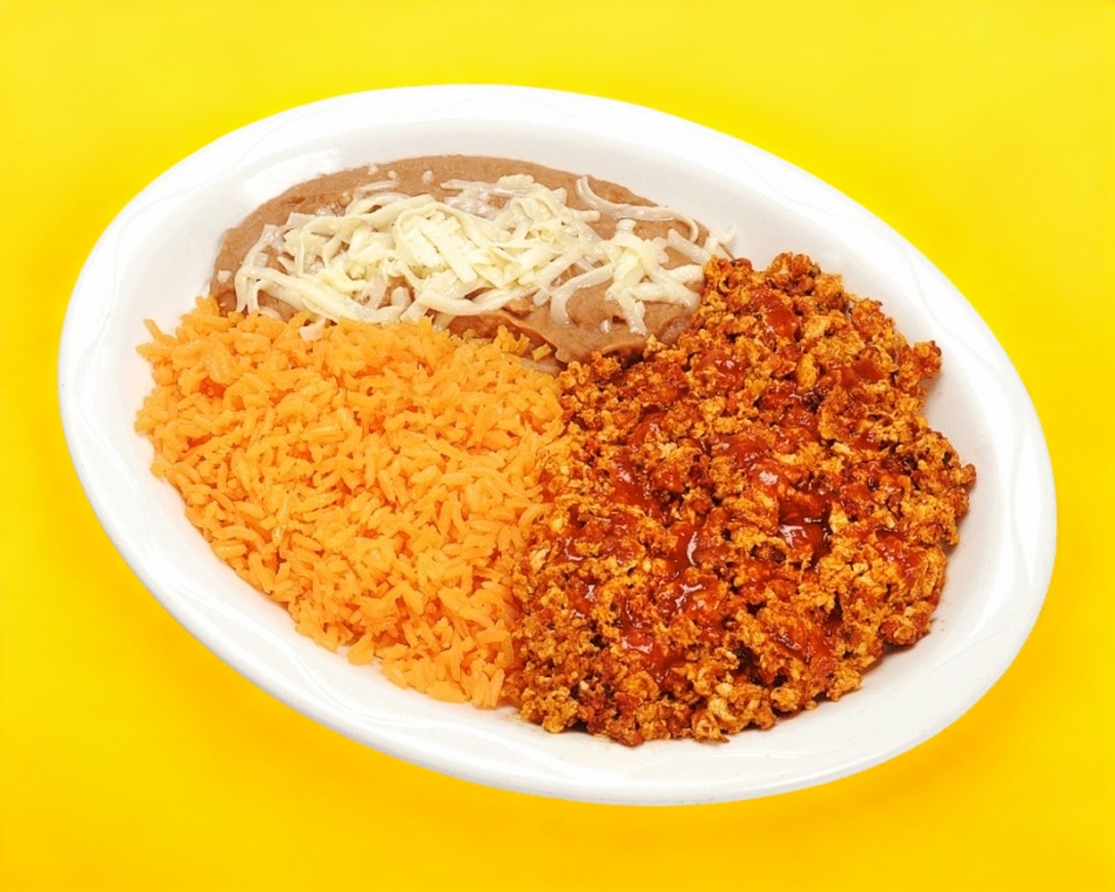 Huevos revueltos con jitomate, cebolla y chile.