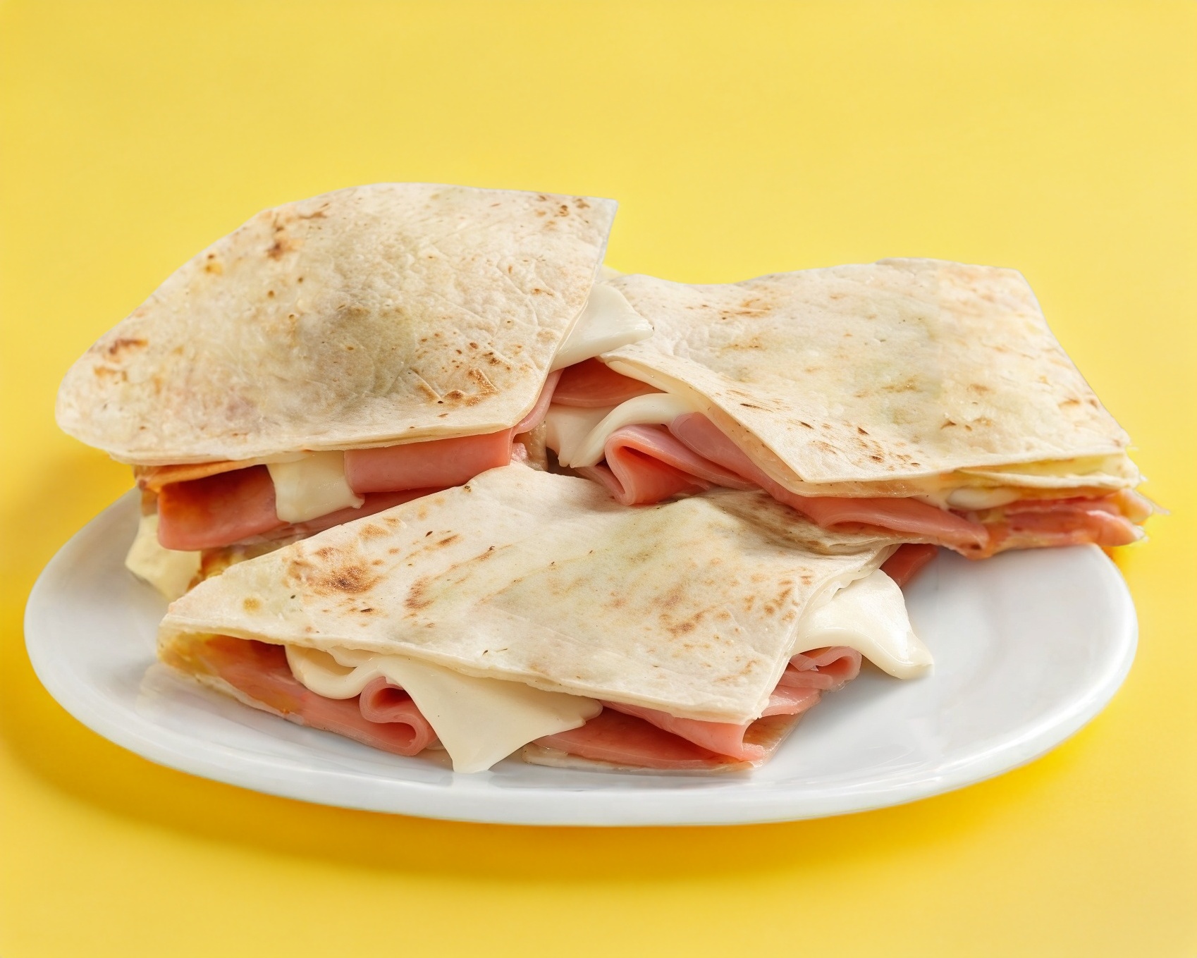 Tortillas de harina rellenas de jamón y queso.