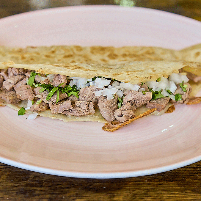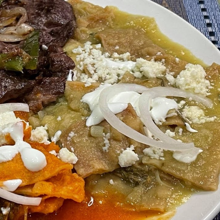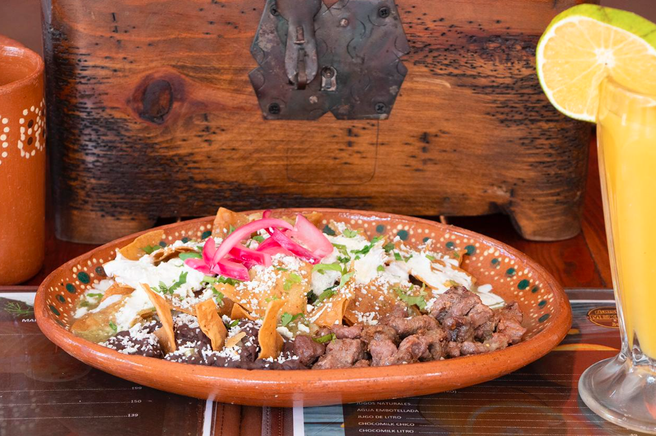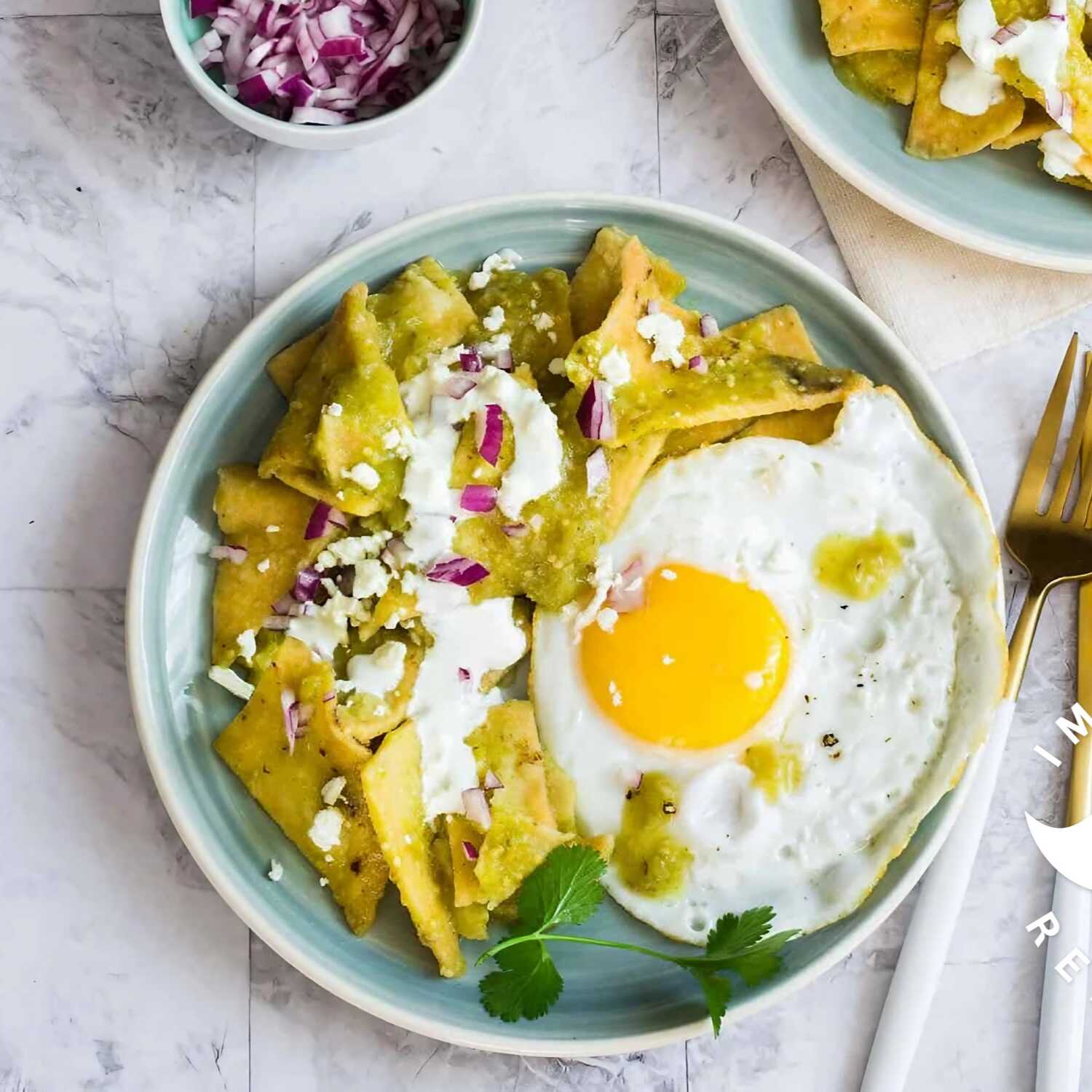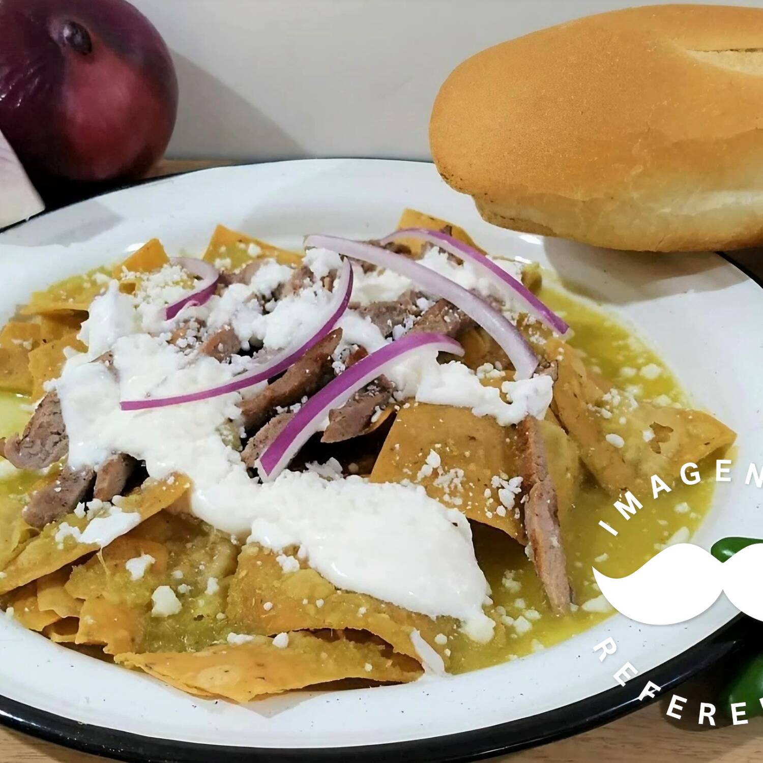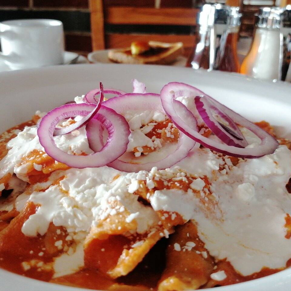 Chilaquiles crujientes con queso, crema, cebolla y cilantro