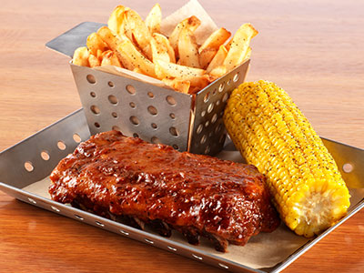 Medio costillar importado, suave y jugoso, acompañado con papas y elote.