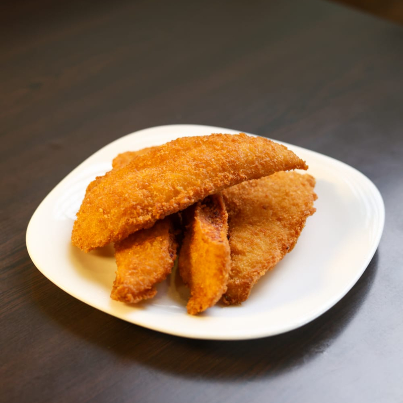 Filete de pescado blanco (como tilapia o mojarra) cubierto con una capa de empanizado crujiente con especias como ajo en polvo perejil seco y pimienta. Frito en aceite para un acabado dorado y jugoso por dentro.