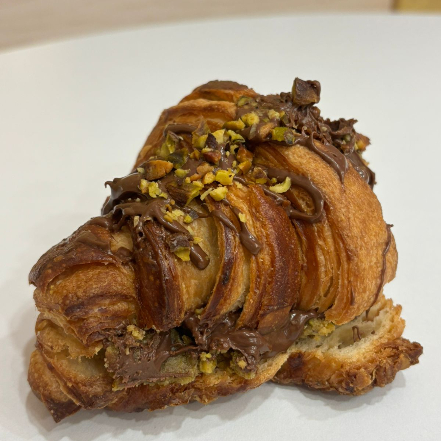 Croissant relleno de nustra crema de pistacho y chocolate blanco y nutella