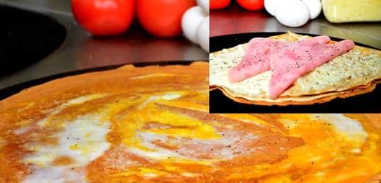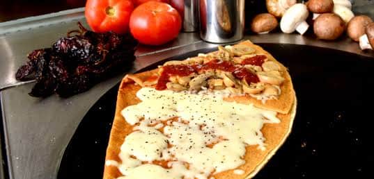 Crepa de champiñones con Queso manchego gratinado y salsa chipotle