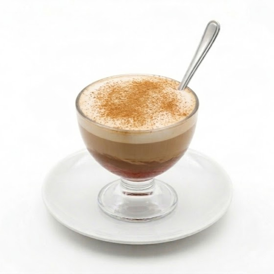 1 espresso de café con espuma de leche y canela