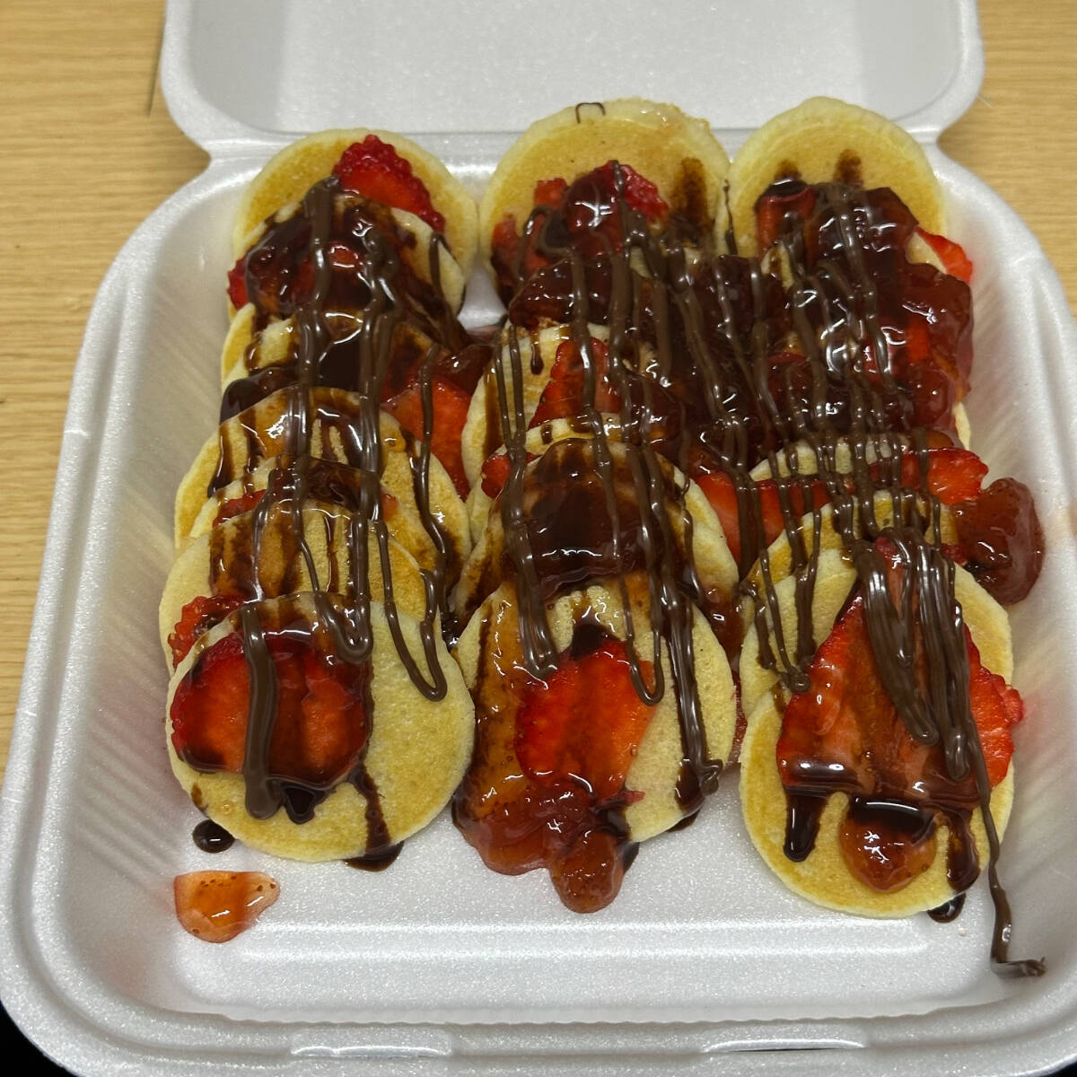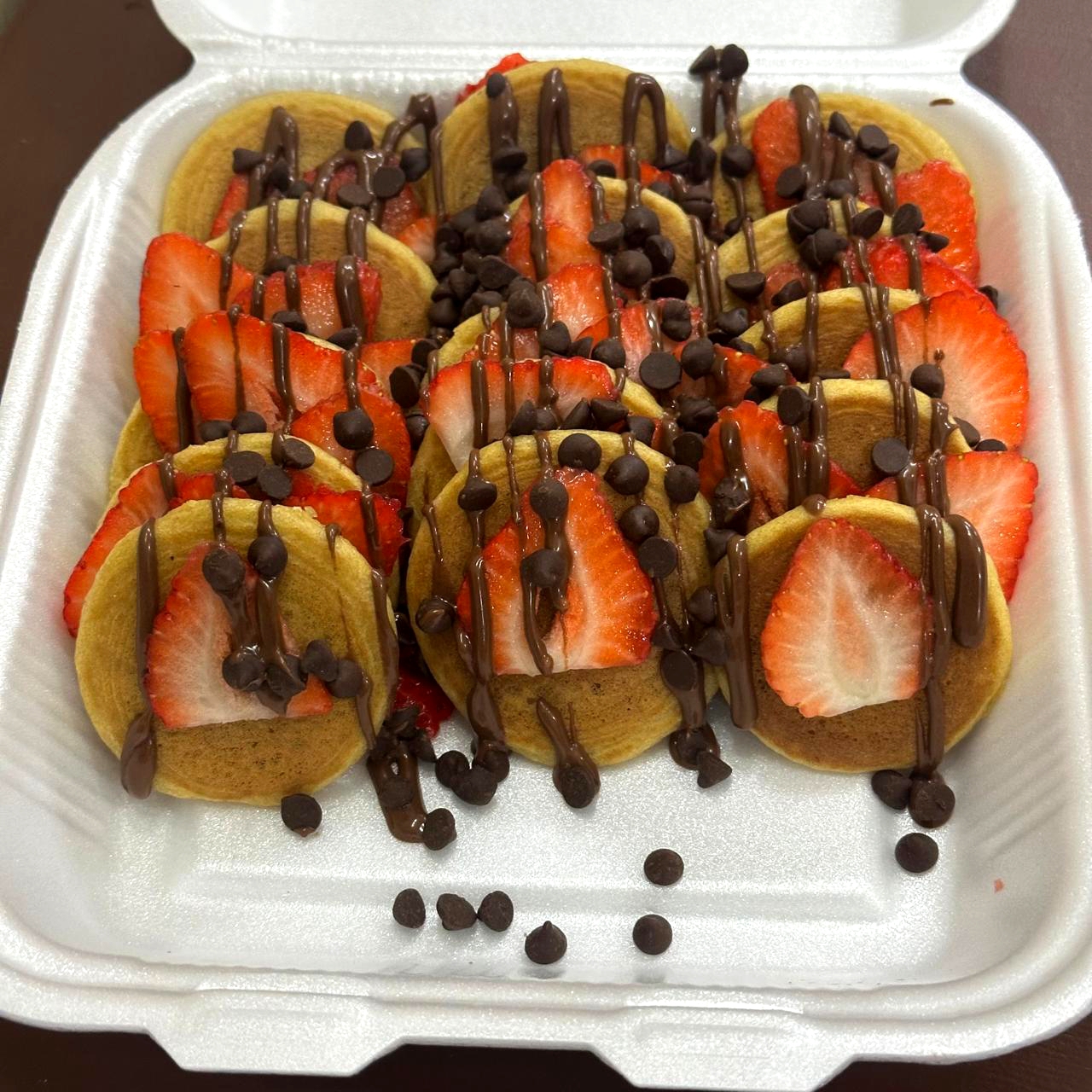 24 Piezas de mini pancakes con 4 toppings a elegir