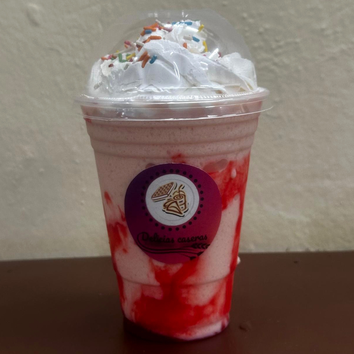 Elaborada con jarabe de fresa, vainilla y un poco de crema batida