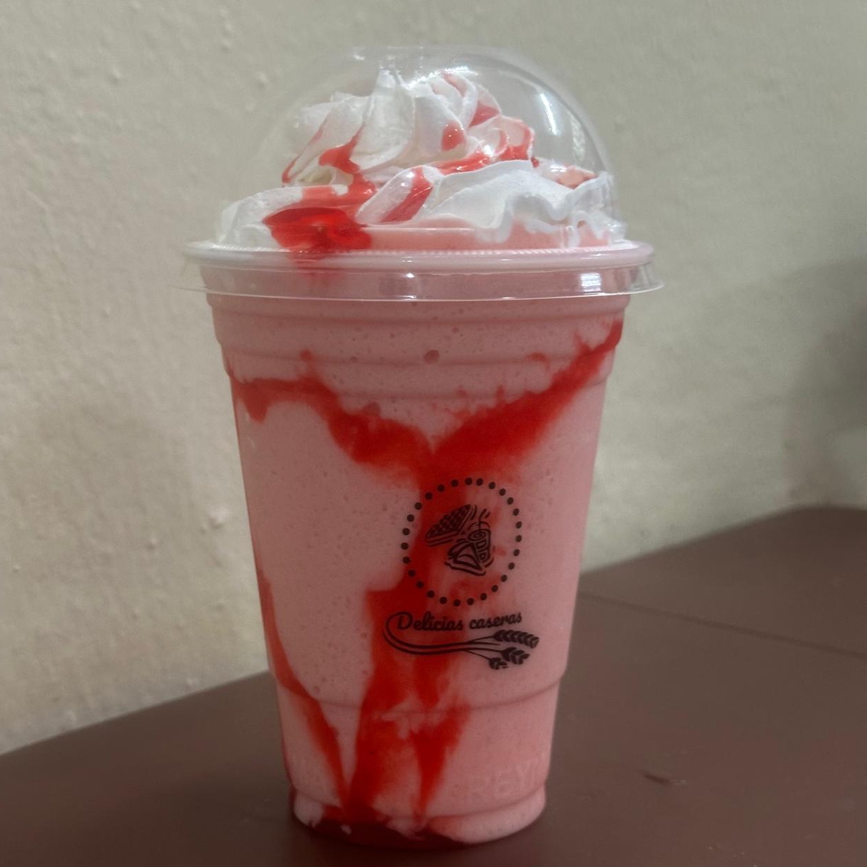 Preparado con base de helado jarabe de fresa , y crema batida 14Oz