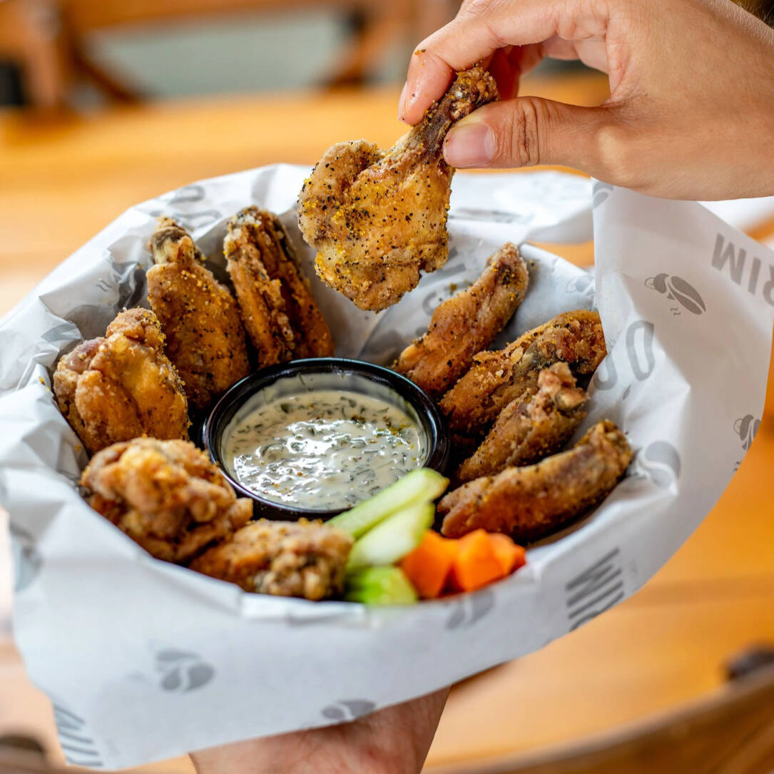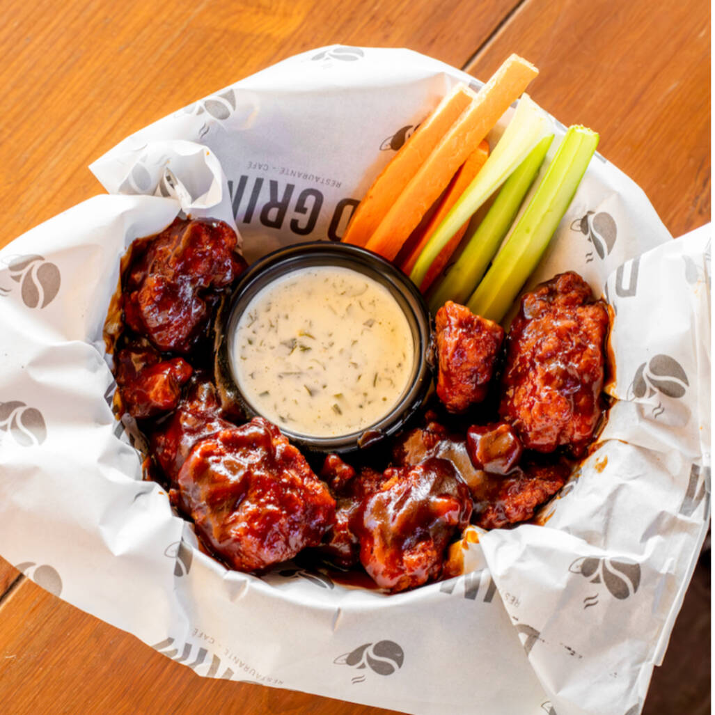 400 gramos de ricas alitas de pollo freídas y bañadas con salsa de tu preferencia, acompañadas de crudite y aderezo ranch.