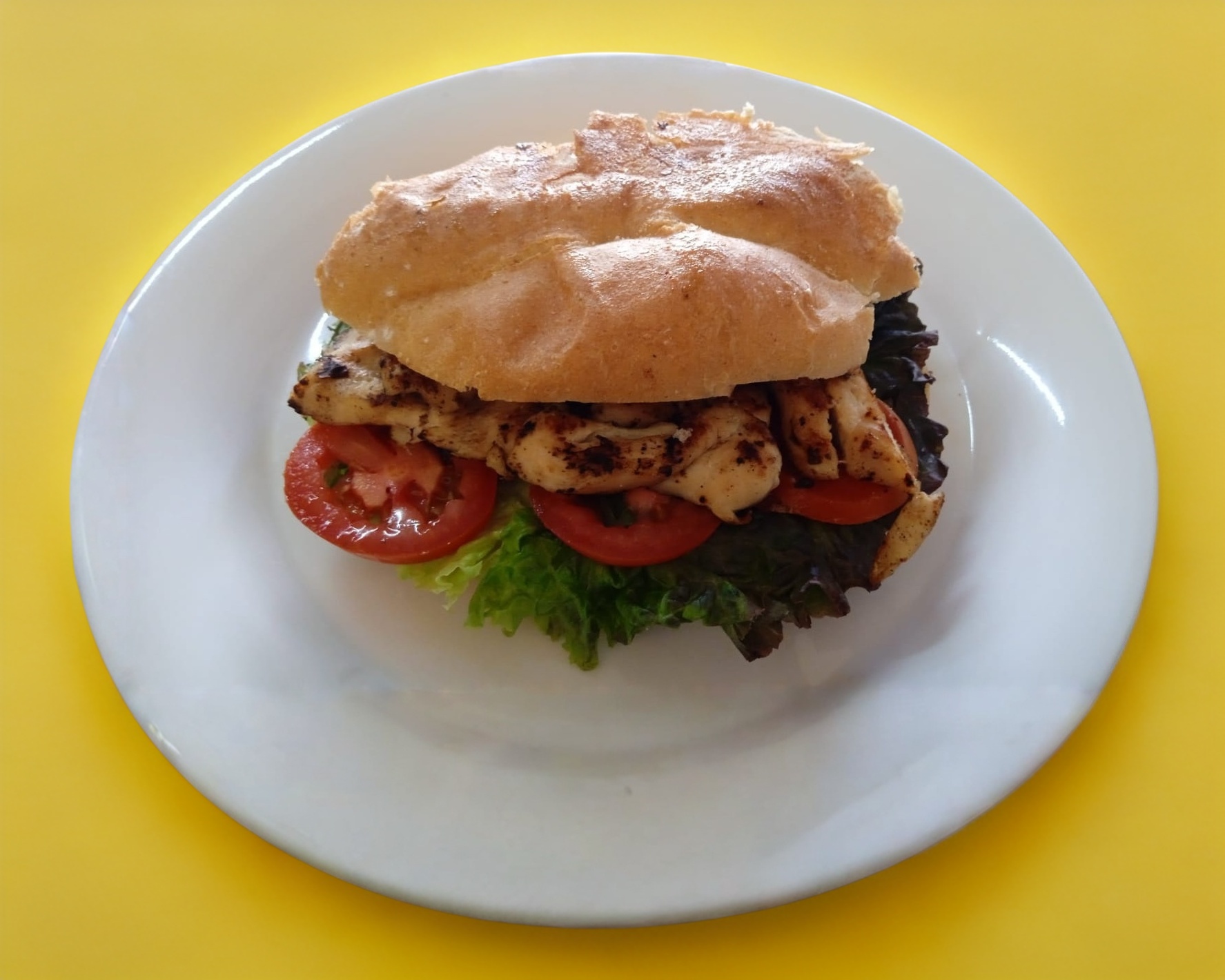 Telera, 100 gramos de pollo, lechuga, jitomate, cebolla, costra de queso