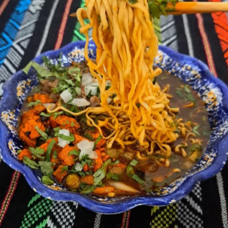 Preparado con consomé de birria acompañado de una porción generosa de birria y fideos.
