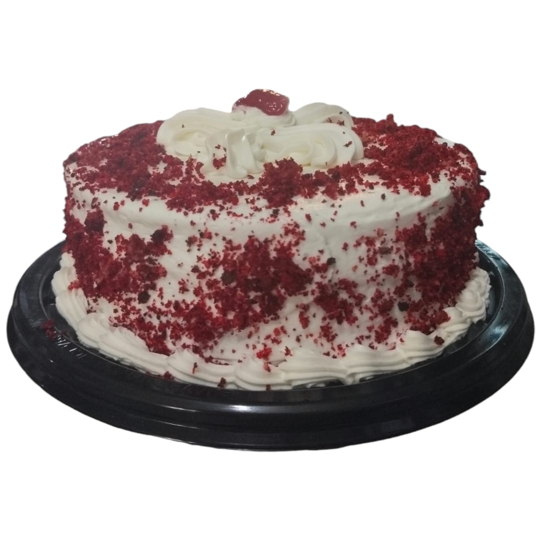 12 Personas, pastel rojo aterciopelado con un toque de cacao y betún de queso crema.