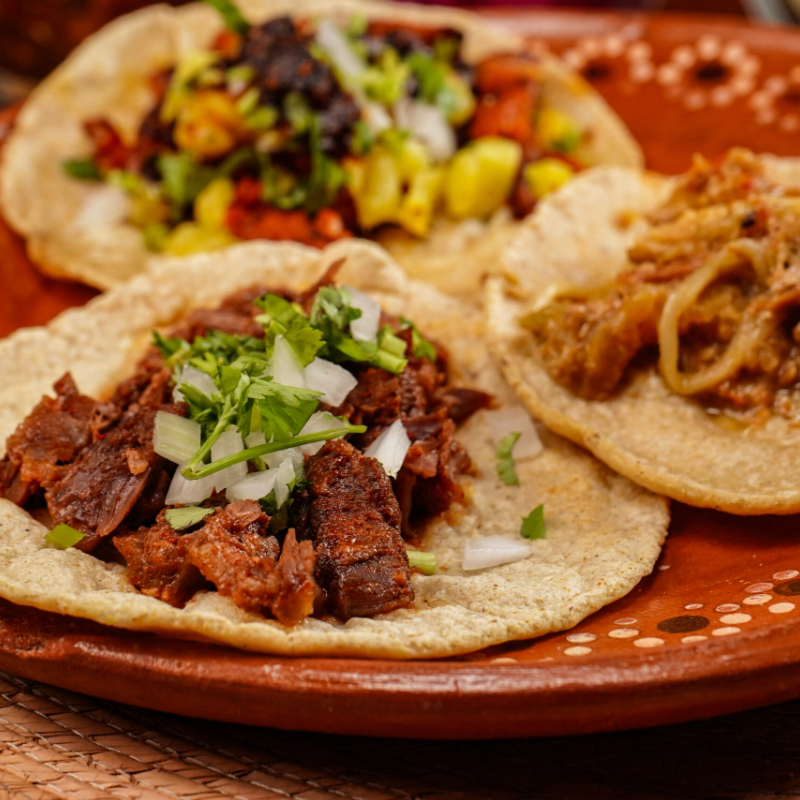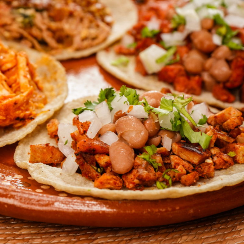 Carne de cerdo marinada al estilo tradicional, cocinada en trompo y servida en tortilla de maíz hecha a mano con piña, cebolla y cilantro. ¡El clásico que nunca falla!
