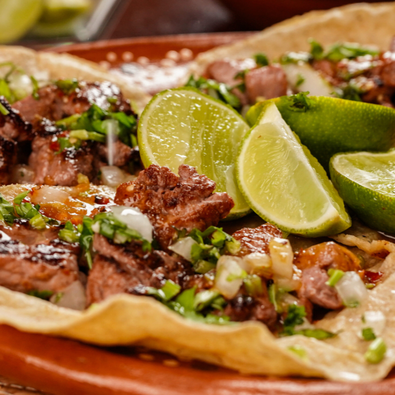Tortilla de maíz recién hecha con carne asada al momento, jugosa y bien sazonada, acompañada de cebolla y cilantro. Un favorito lleno de sabor.