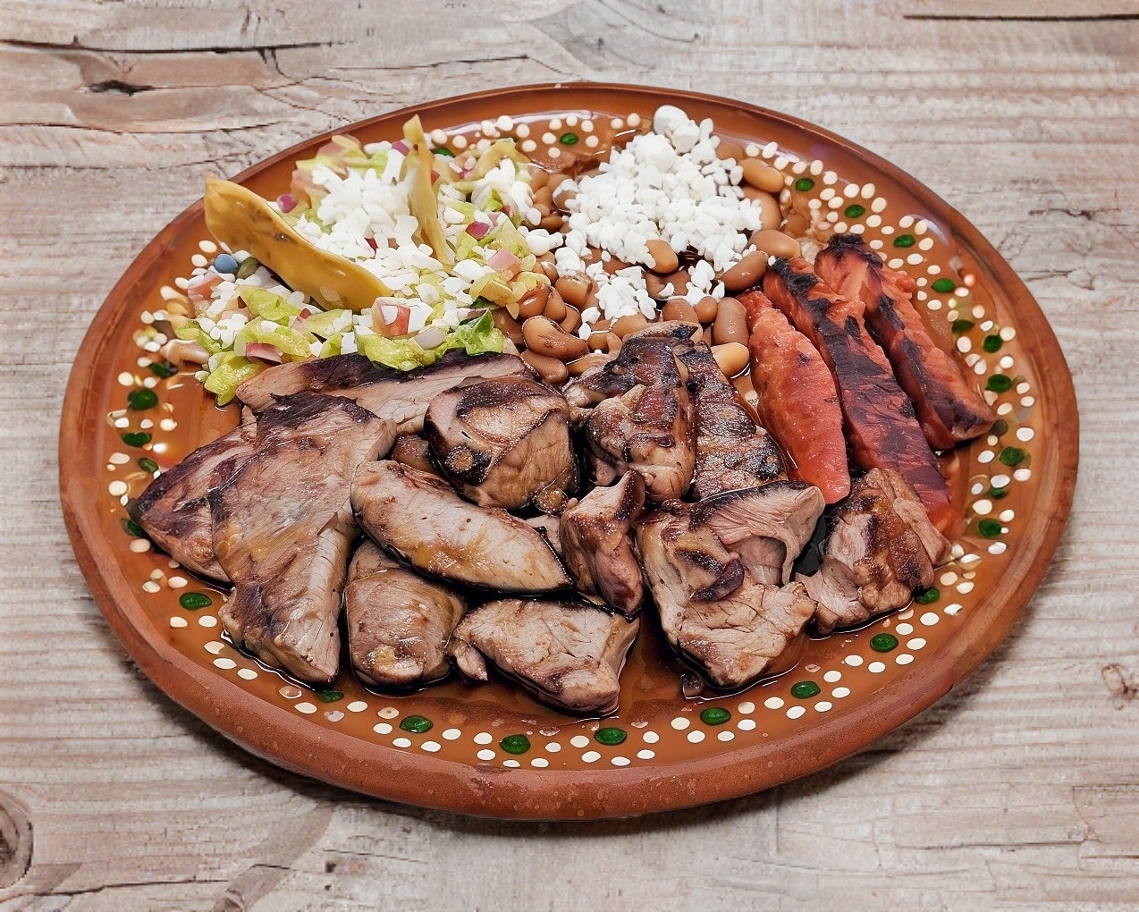 Incluye arroz, frijoles o ensalada, toritllas hechas a mano.