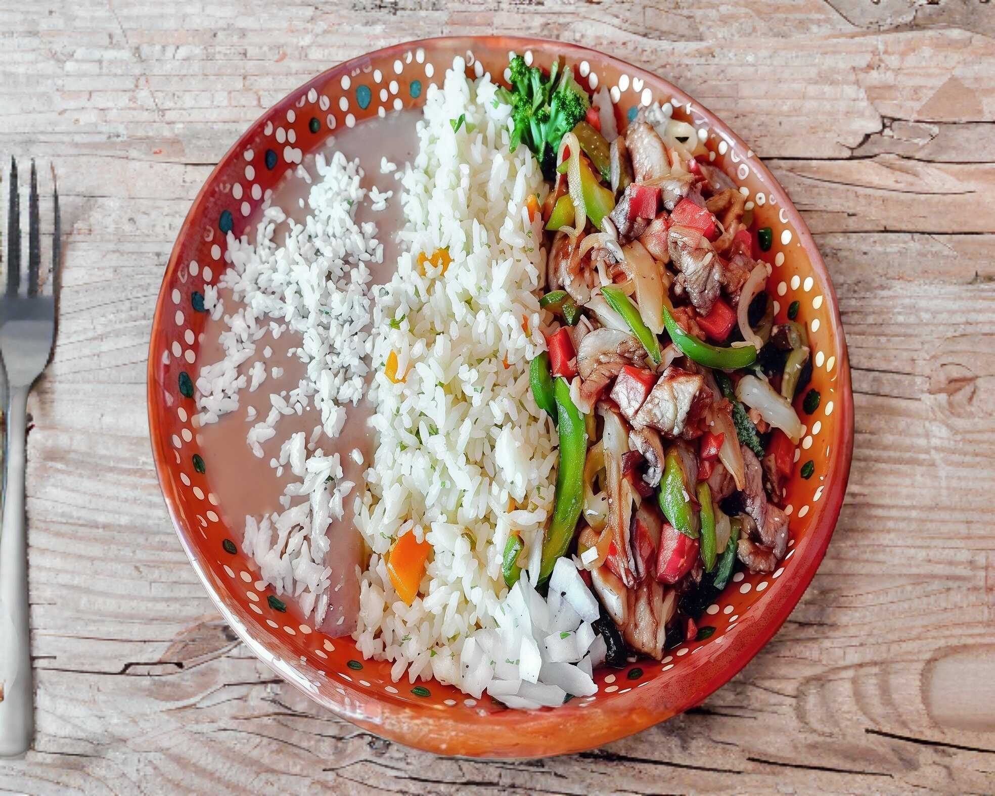 Incluye arroz, frijoles, y 3 tortillas hechas a mano.