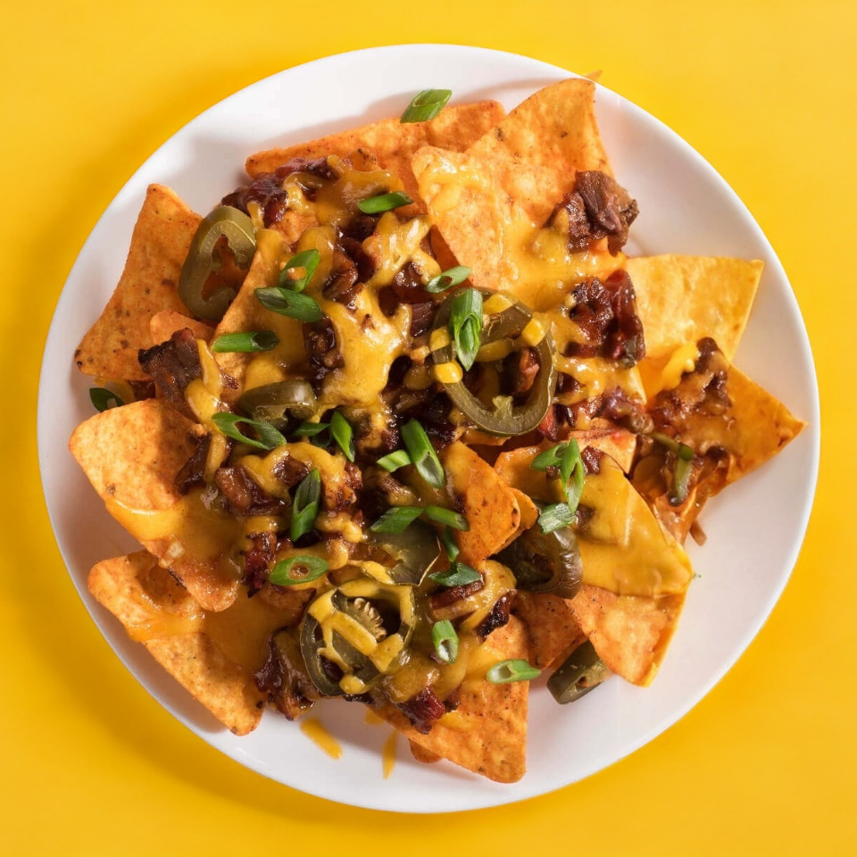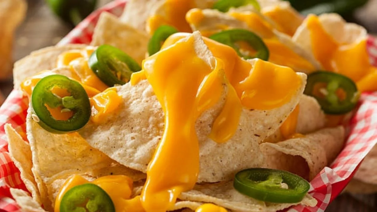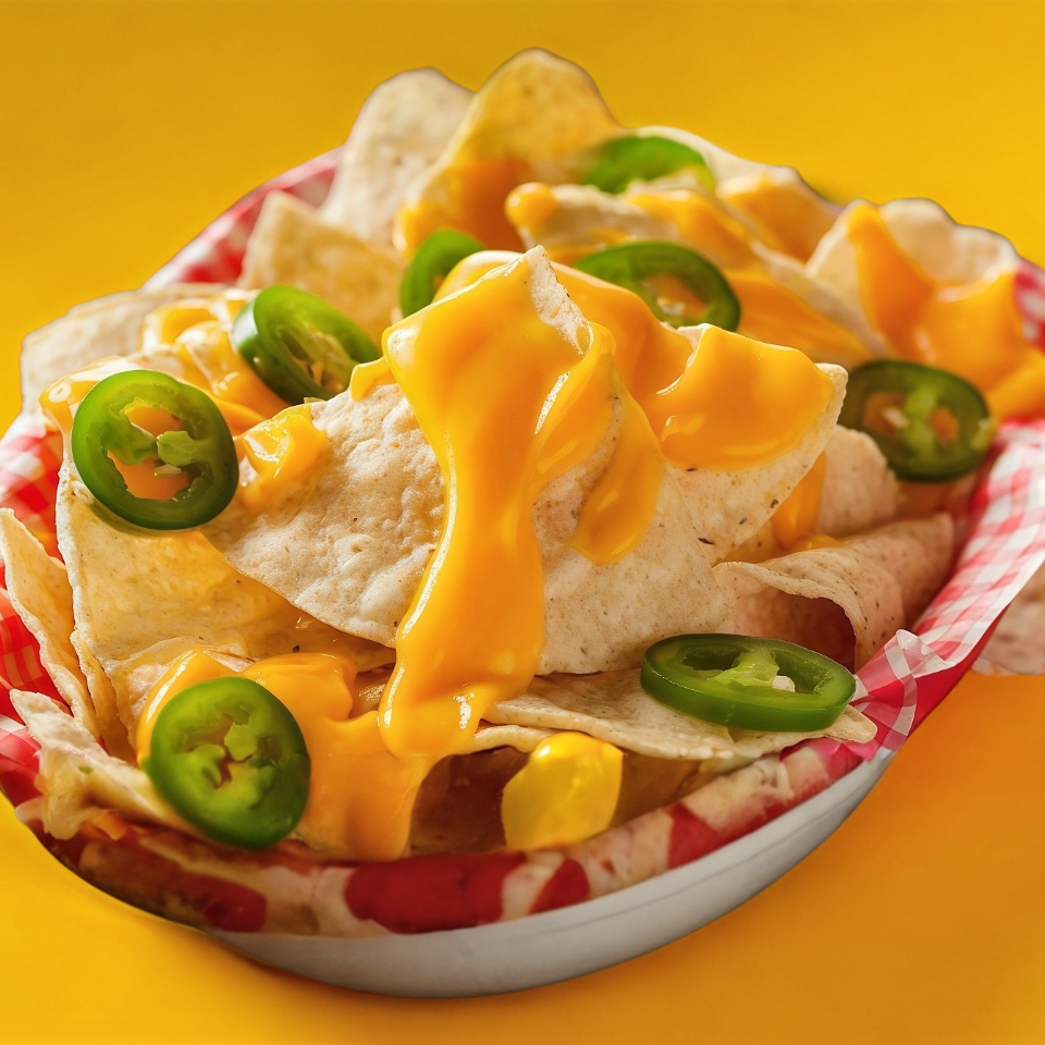 totopos con queso cheddar y chiles jalapeños.