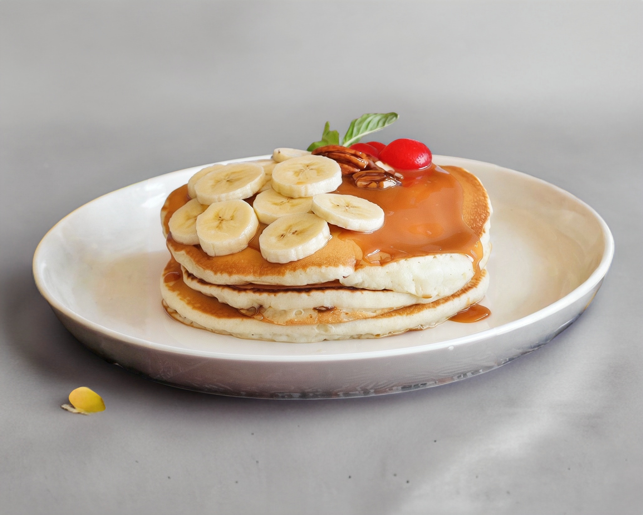 3 piezas, con mermelada de fresa, mantequilla y miel maple.