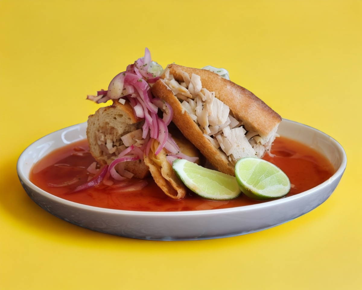 Quesadilla grande, con salsa mexicana, limón y chile.