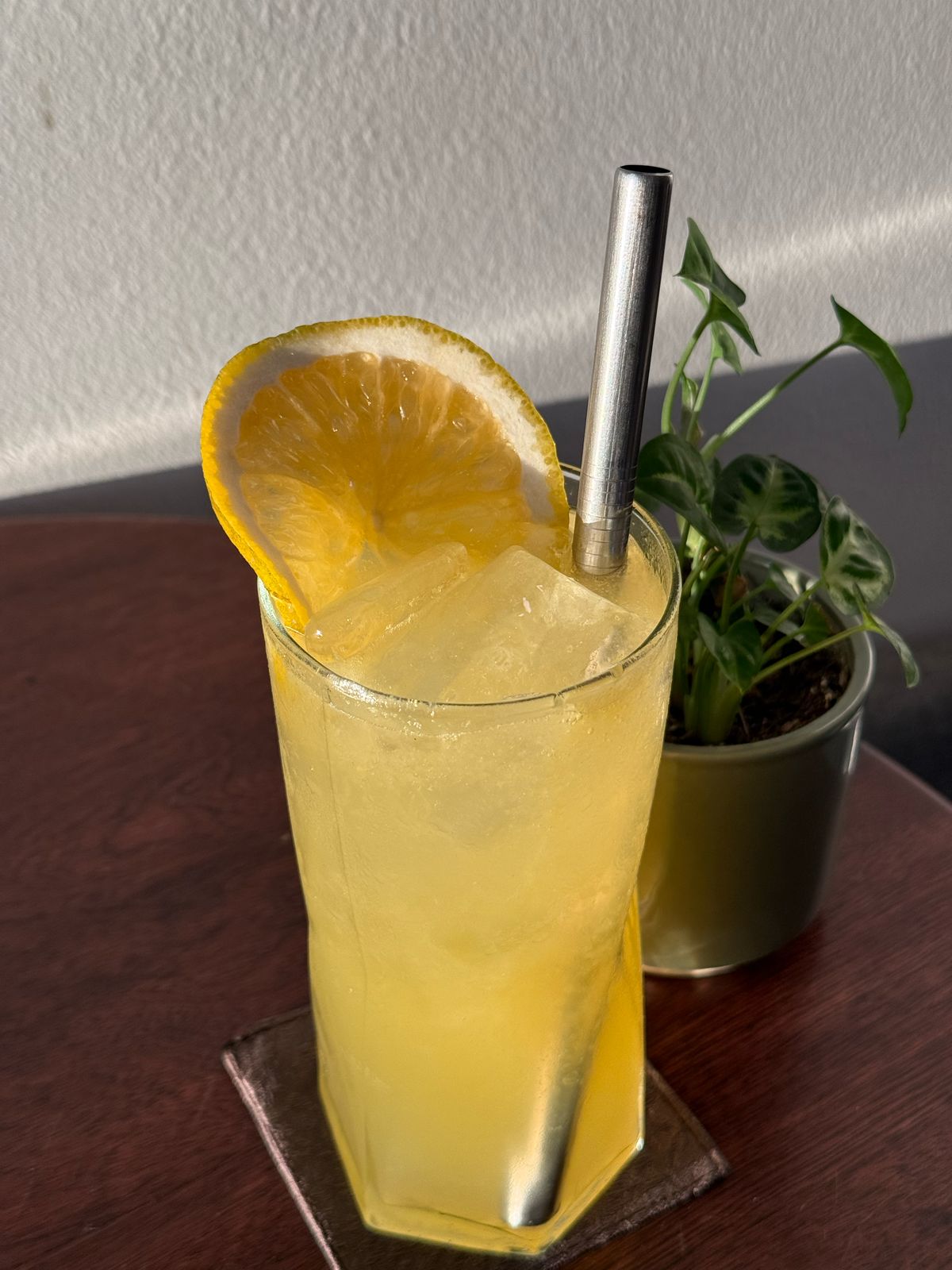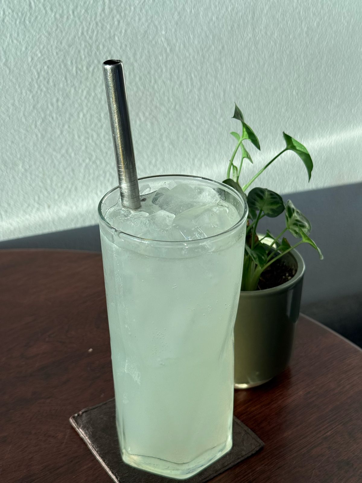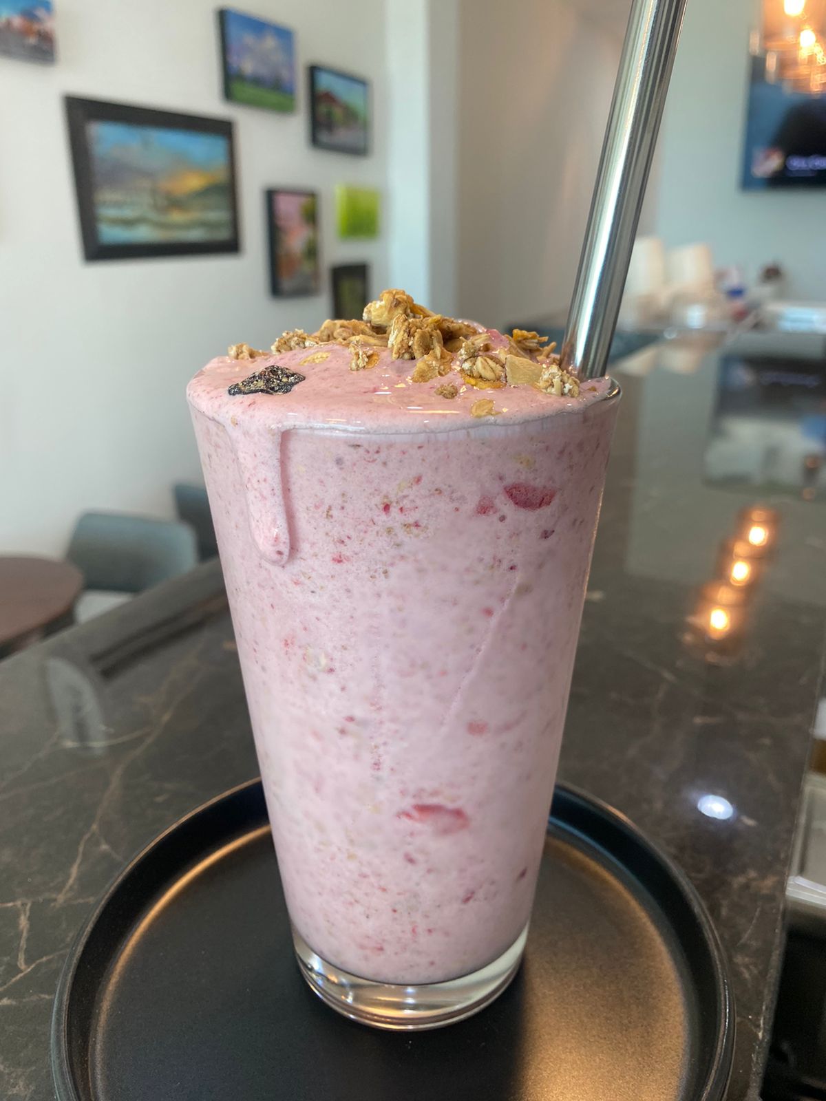 Frappeado de matcha con mango, plátano, canela y leche de coco
