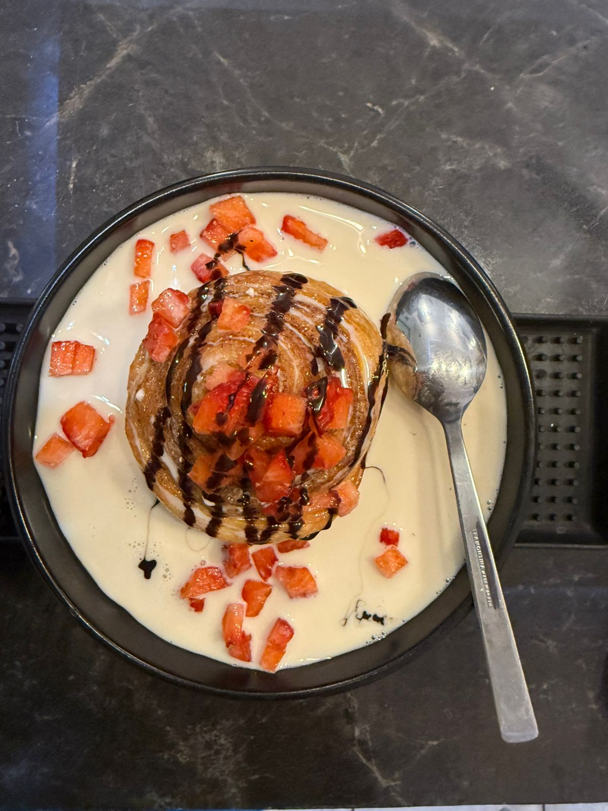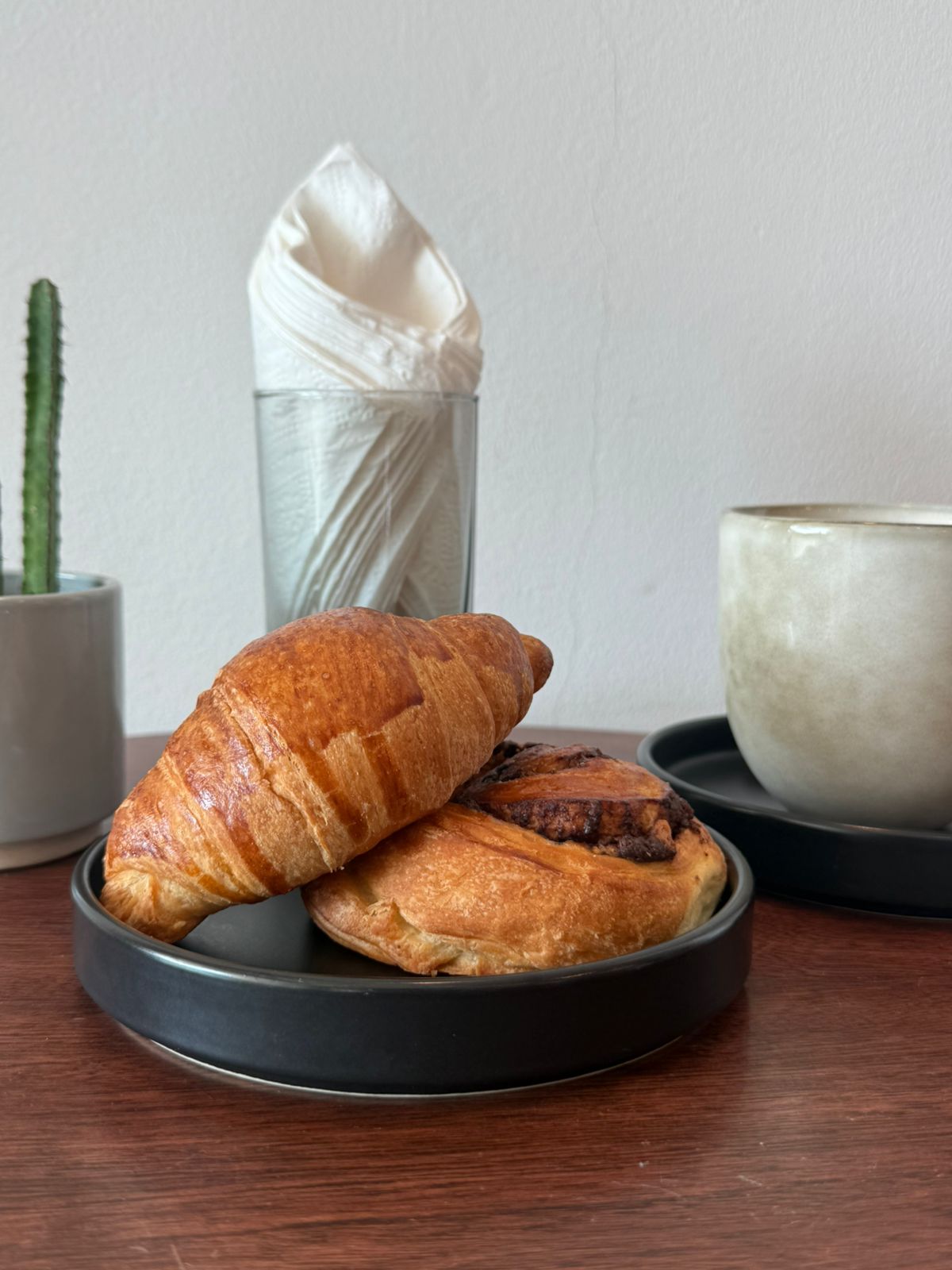 A elegir: Rol de canela o Croissant relleno de chocolate