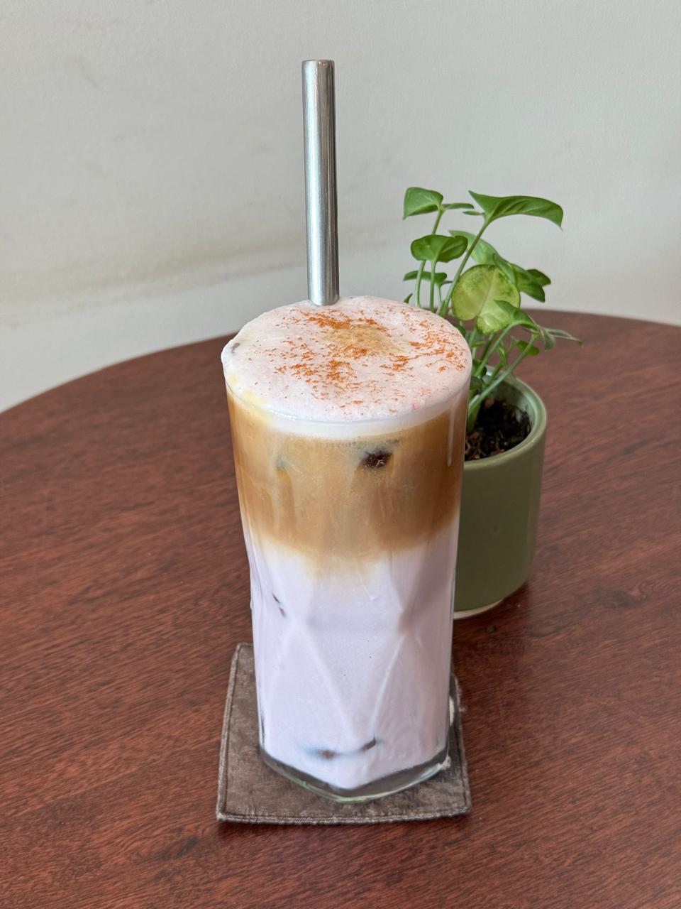 Preparado en caliente, deliciosa preparación de taro, puede contener café extra