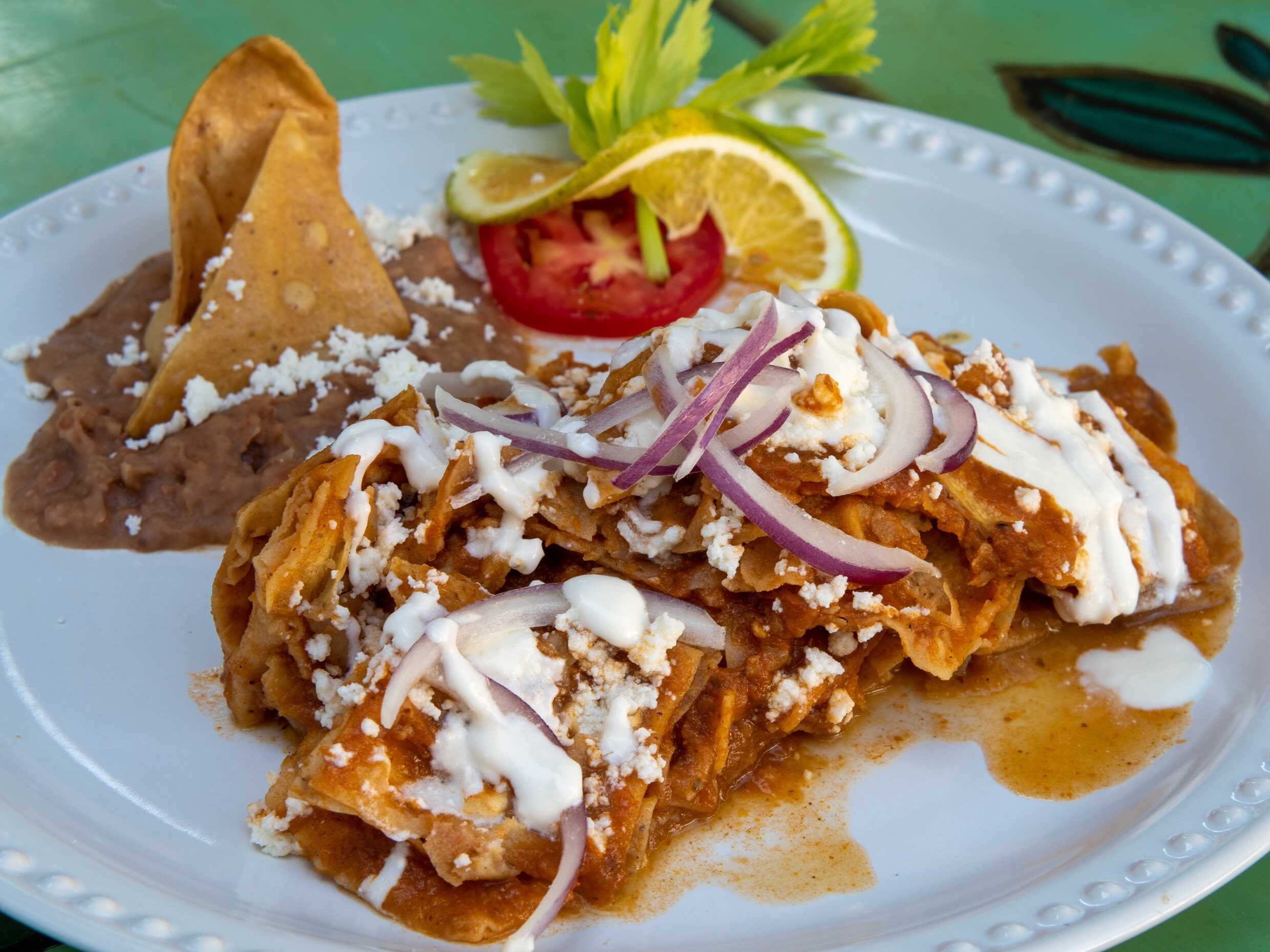 Chilaquiles Sencillos con Frijoles