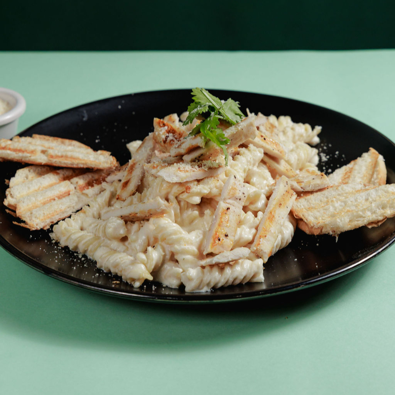 Pasta fetuccini mezclado con nuestra cremosa salsa alfredo, mezclado con el sabor de nuestro tierno pollo.