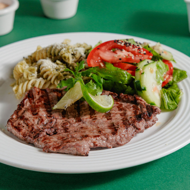 200 gr de jugosa arrachera a la plancha, acompañado de 2 guarniciones a su elección.