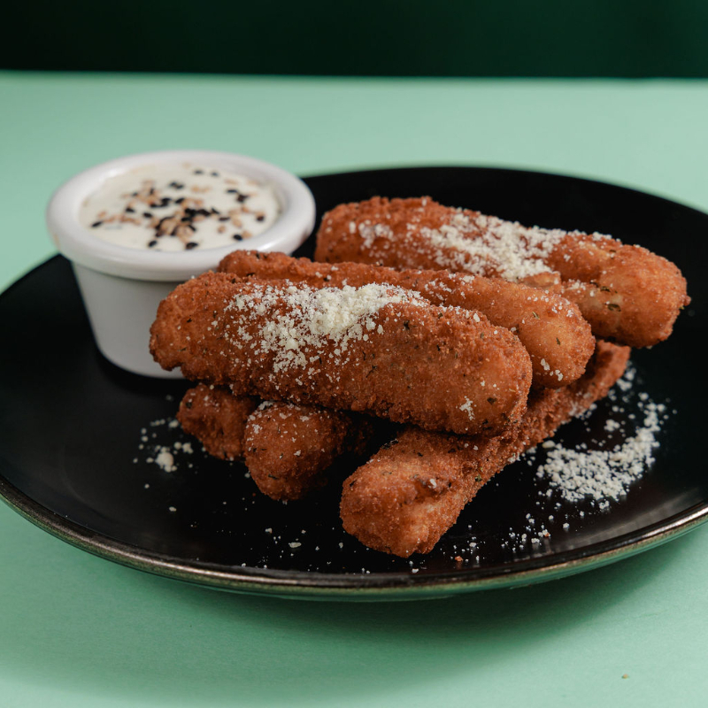 6 Dedos de queso empanizados, acompañado de aderezo ranch.