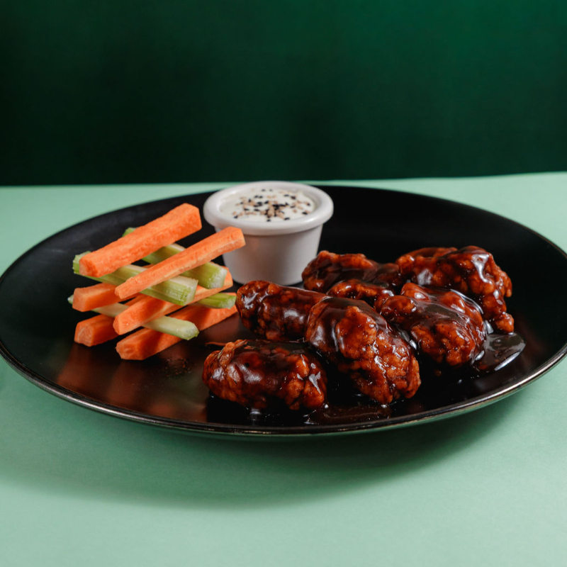 250 gr de boneless bañadas en la salsa de tu elección, incluye aderezo ranch y verdura.