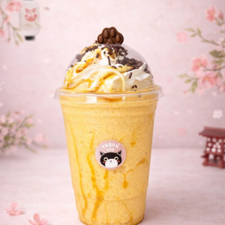 Delicioso Frappuccino con Mazapan original acompañado con shot de caramelo de la casa , leche deslactosada , escencia de cacahuate echa en casa,shot de cafe espresso recien molido , decorado con crema batida y un espiral de caramelo junto con chispas de chocolate