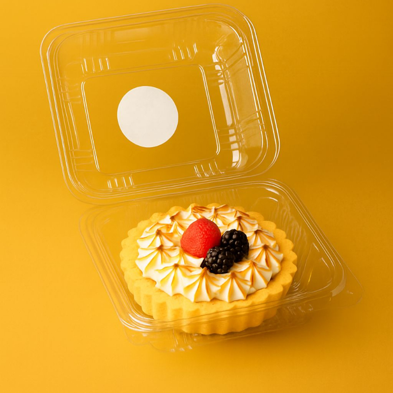 Una base de mousse de limón, con una tarta hecha en casa y decorado con berrys y merengue.