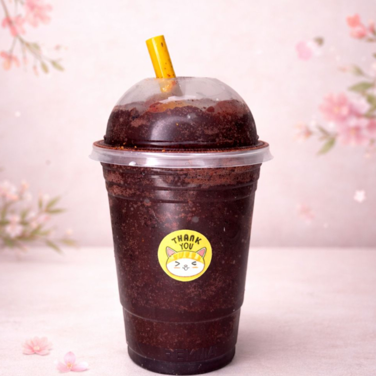 Refrescante y picosito smoothie de tamarindo , licuado con pulpa natural , dash de jugo de naranja , servido con chamoy y miguelito, acompañalo con tus gomitas favoritas y banderilla de tamarindo.