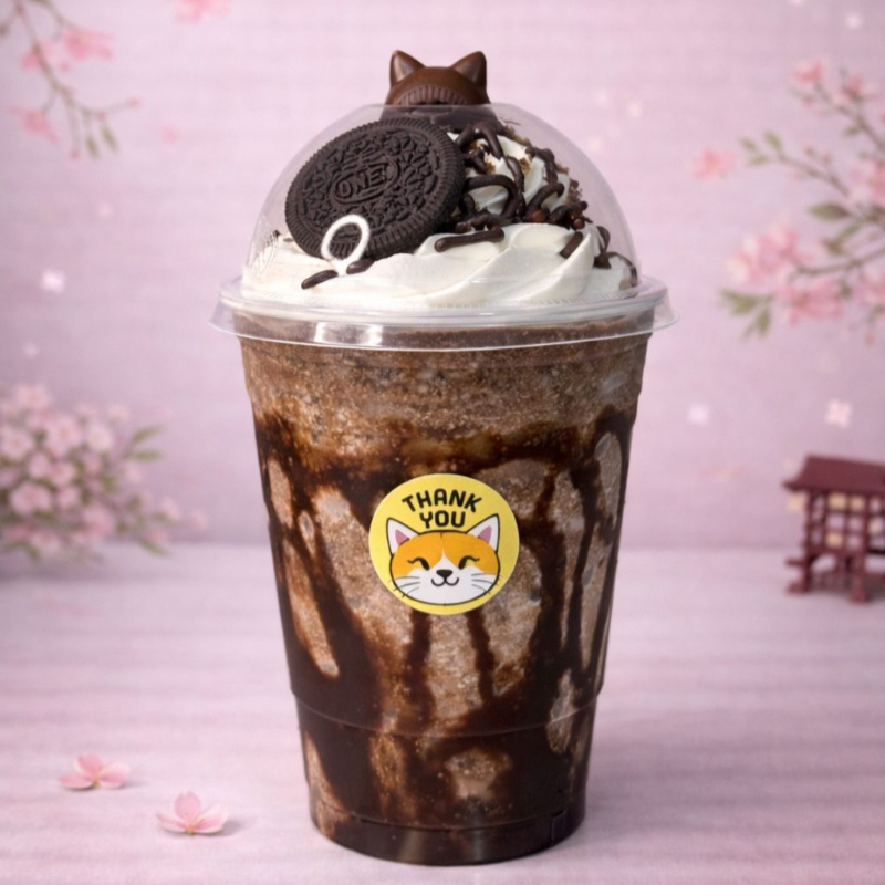 Delicioso Frappuccino de oreo , frappeado con medio shot de cafe recien molido al momento, leche deslactosada, galletas oreo y jarabe de chocolate.