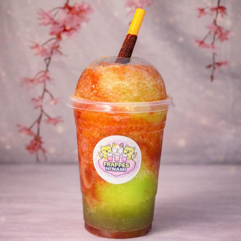 Delicioso y refrescante smoothie de mango , 100% natural , frapeado en jugo de mango y escarchado con chamoy y miguelito.