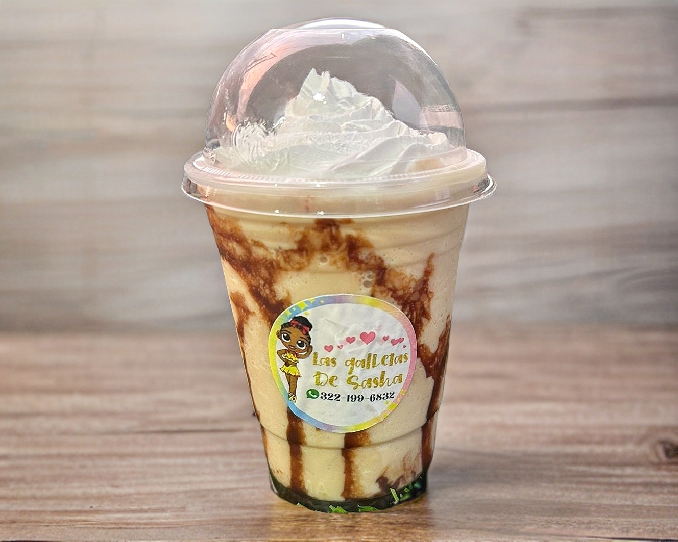 Frappé mazapán con crema batida, nuez , cajeta
