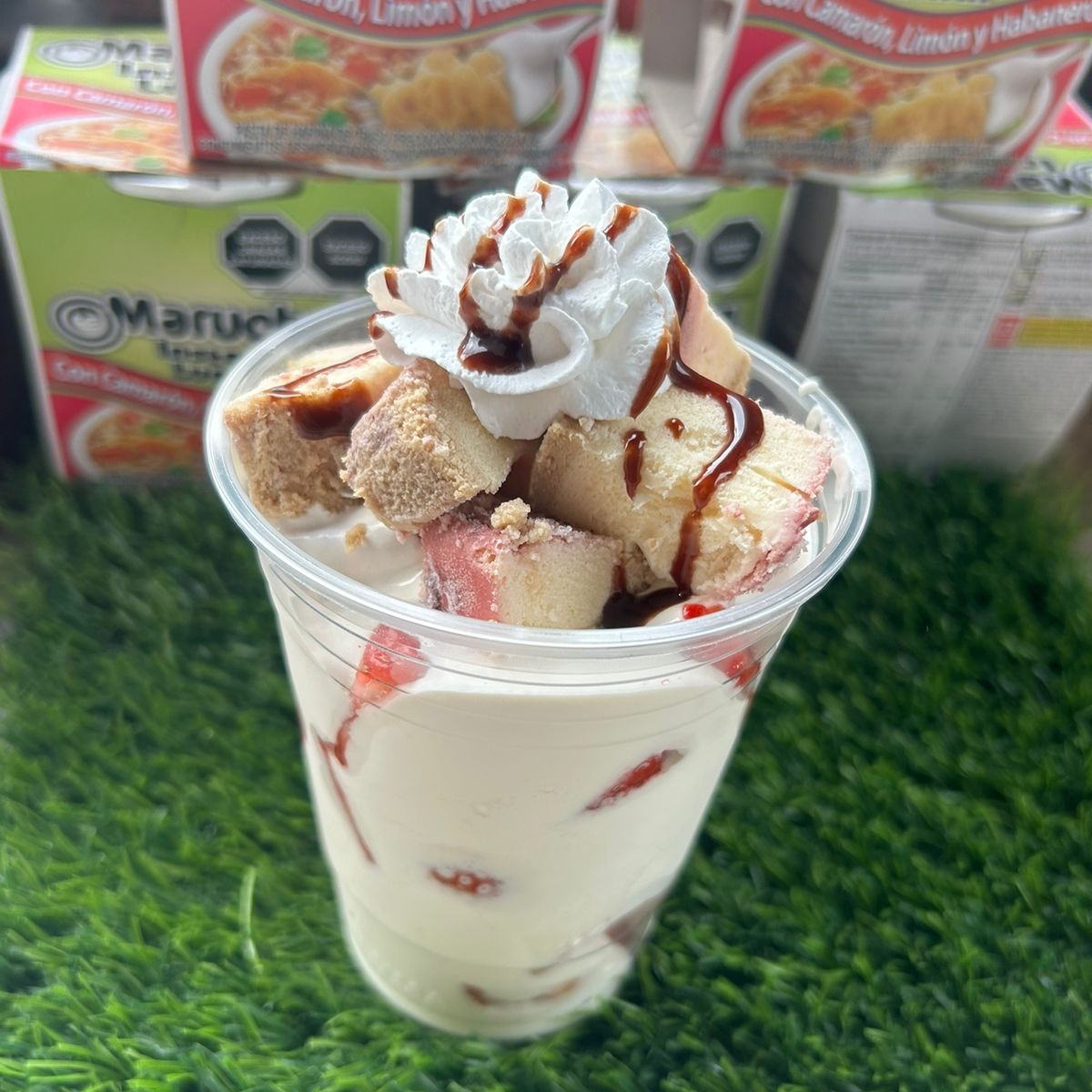 Maruchan con elote , elote preparado con mayonesa crema y queso