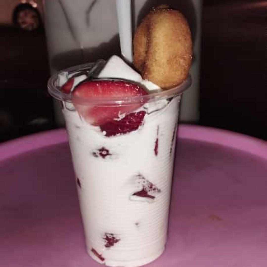 Vaso con elote desgranado preparado con mayonesa,queso y crema