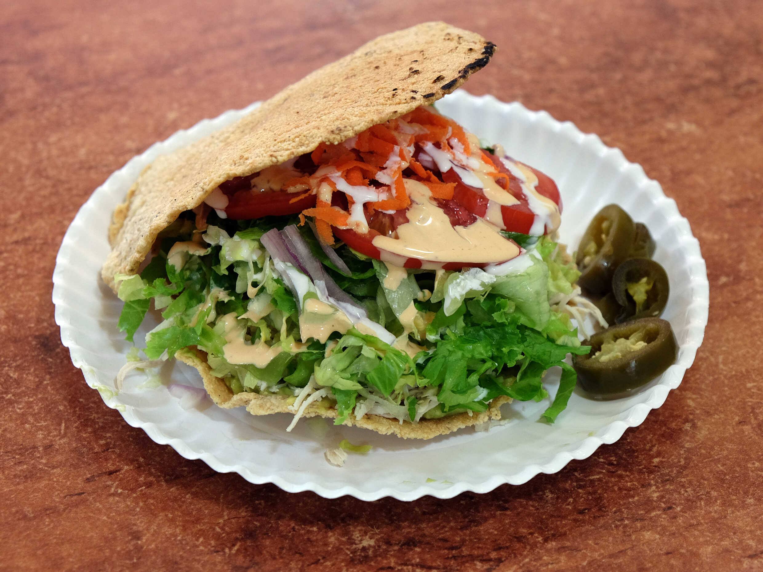 Incluye champiñón, cebolla morada, jitomate, germinado de alfalfa, zanahoria rallada, aceituna negra, pepino.