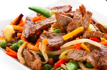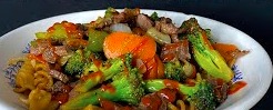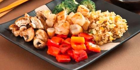 130 g De verduras salteadas con arroz frito, camarón, res y pollo.