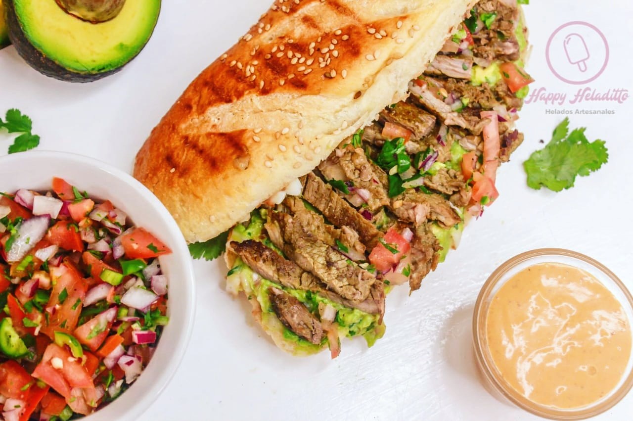 Baguette con frijoles refritos, queso manchego gratinado, guacamole y deliciosa arrachera marinada de la casa. Acompañado de salsa chipotle y salsa mexicana.