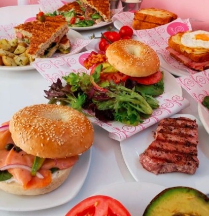 Delicioso bagel con queso crema, jamón York, Mozzarella, aguacate, jitomate fresco. Acompañado de ensalada de mix de lechugas con vinagreta balsámica.