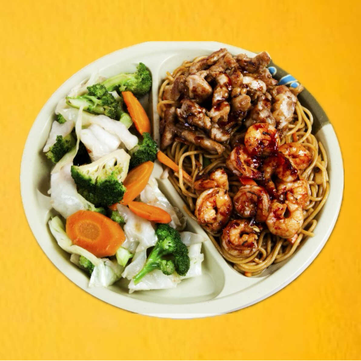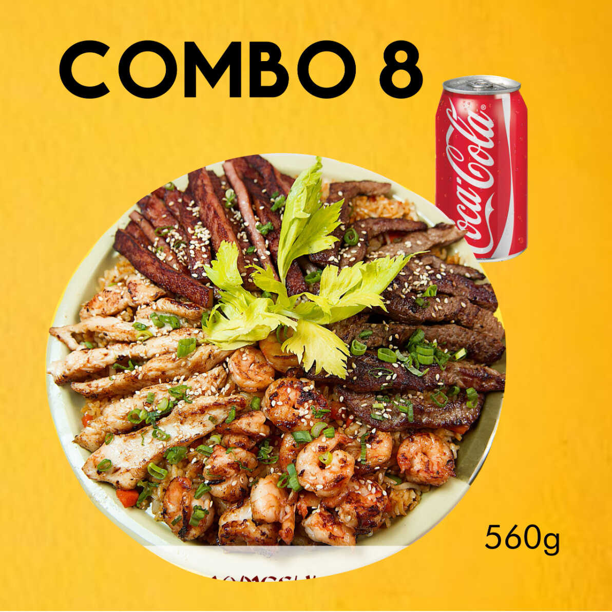 verdura a la plancha, yakimeshi, res, pollo y camarón 680g