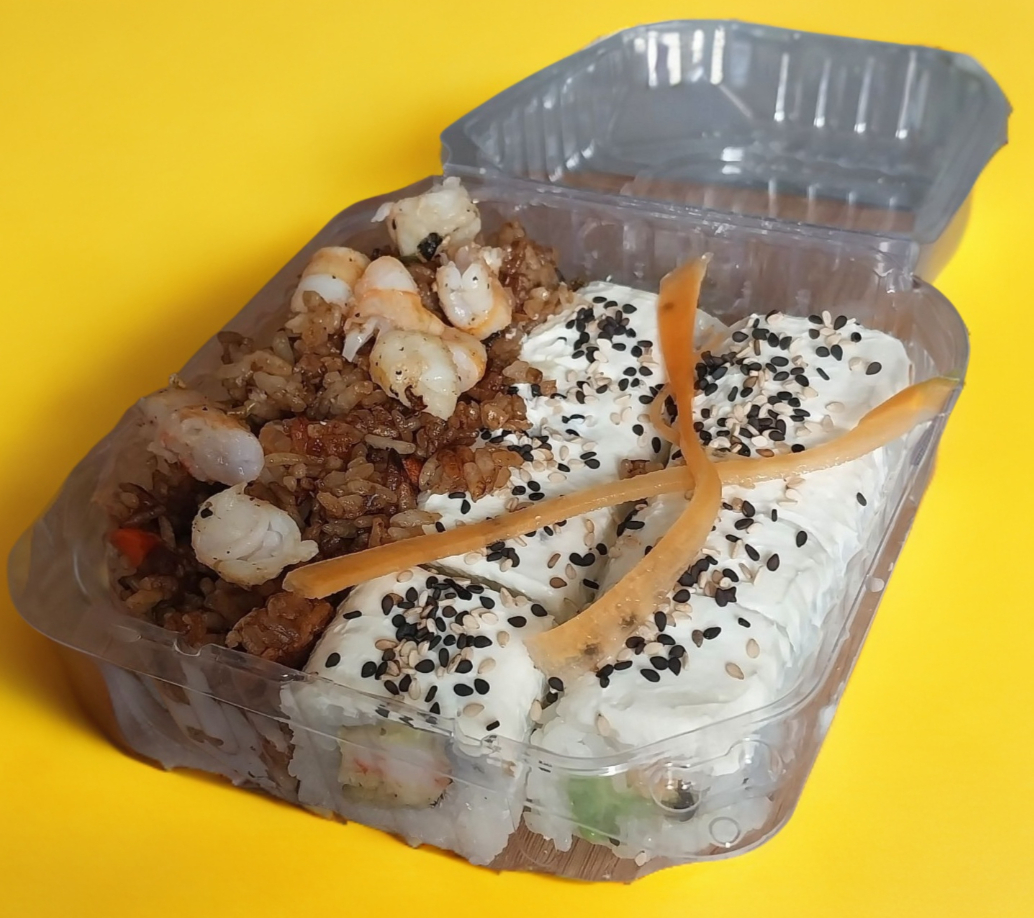 Porción de Yakimeshi*1 + Rollo de Philadelphia*1 + Refresco 300 ml*1