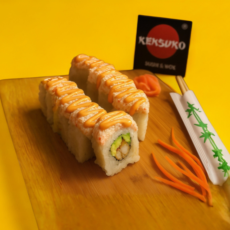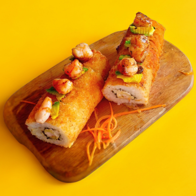 Crujiente por fuera y explosivo por dentro. Este rollo empanizado es una delicia que combina camarón capeado, queso Philadelphia suave y pepino fresco que aporta el toque crocante y refrescante. Por fuera, lo corona un topping de camarón salteado en una salsa de mango habanero, con ese equilibrio perfecto entre lo dulce, lo picante y lo irresistible.