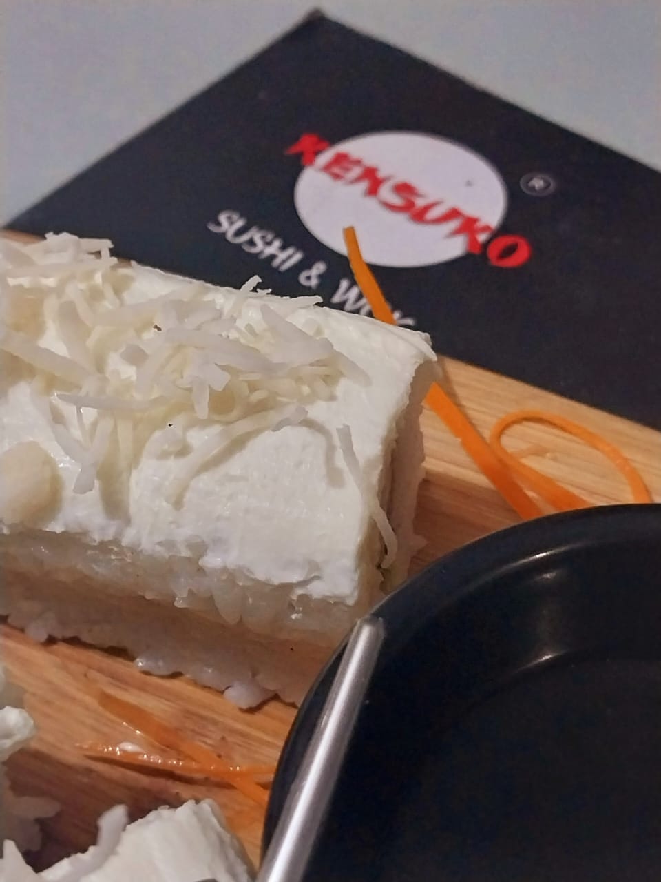Camarón tempura, aguacate, x fuera, Philadelphia y coco rallado