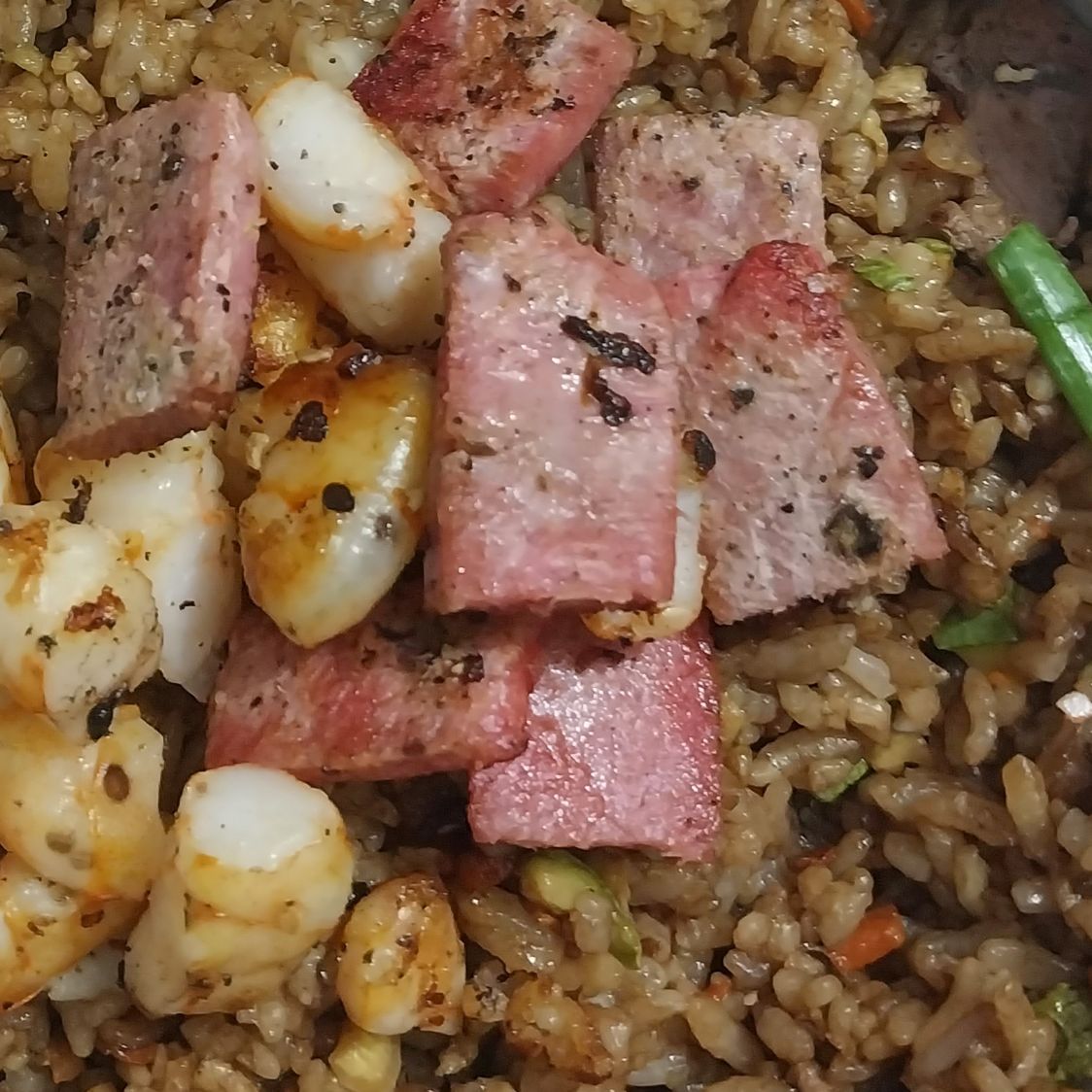 Yakimeshi con Camarón y Arrachera
