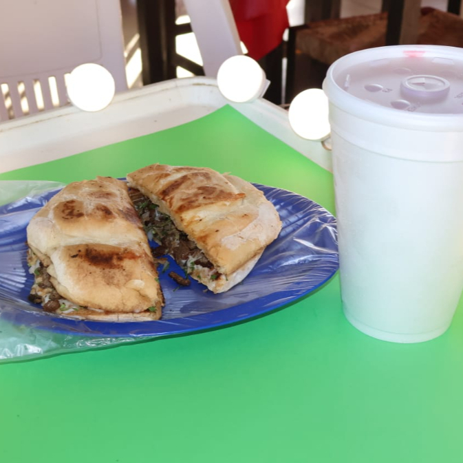 Quesadilla preparada con tortilla a elegir (maíz o harina) y queso derretido, con carne a elección.